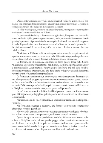 la resilienza in forza operativa e l’appartenenza all’Arma in scelta di vita.