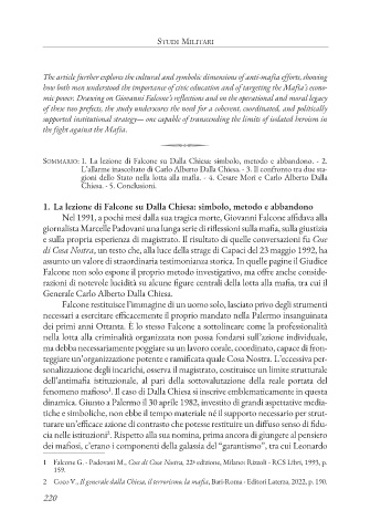 SoMMArIo: 1. La lezione di Falcone su Dalla Chiesa: simbolo, metodo e abbandono. - 2.
