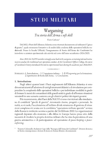 SommARio: 1. introduzione. - 2. L’esperienza italiana. - 3. il Wargaming per la formazione.