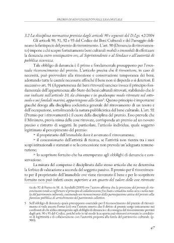 5 Sull’obbligo di denuncia quale presupposto essenziale per il riconoscimento del premio di rinveni-