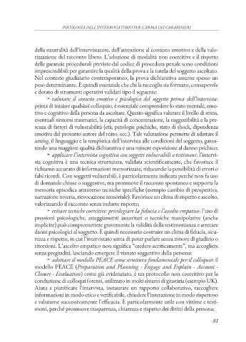 ➣ adottare il modello PEACE come struttura fondamentale per il colloquio: il