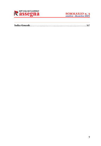 assegna SOMMARIO n. 4 dell’Arma dei Carabinieri ottobre - dicembre 2025 Indice Generale. . . . . . . . . . . . . . . . . . . . . . . . . . . . . . . . . . . . . . . . . . . . . . . . . . . . . . . . . . . . . . . 267 9