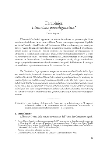 SOMMArIO: 1. Introduzione. - 2. L’Arma dei Carabinieri come Istituzione. - 3. Gli elementi