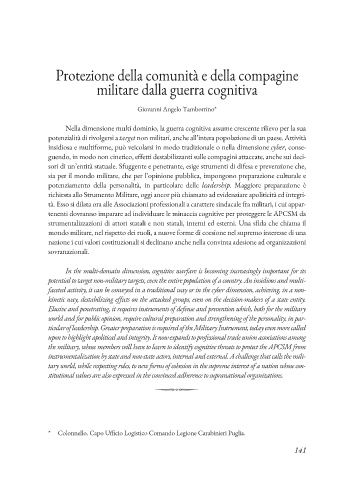 * Colonnello. Capo Uf cio Logistico Comando Legione Carabinieri Puglia.