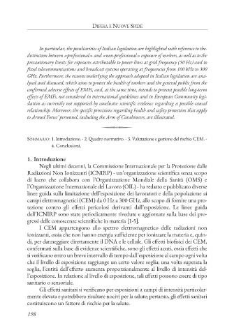 SoMMARIo: 1. Introduzione. - 2. Quadro normativo. - 3. Valutazione e gestione del rischio CEM. -