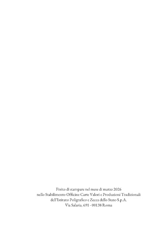 Finito di stampare nel mese di marzo 2026 nello Stabilimento officine carte Valori e Produzioni tradizionali dell’istituto Poligrafico e zecca dello Stato S.p.a. Via Salaria, 691 - 00138 roma 276