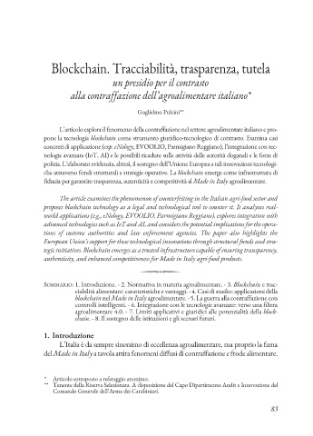 SOmmARIO: 1. Introduzione. - 2. Normativa in materia agroalimentare. - 3. Blockchain e trac-