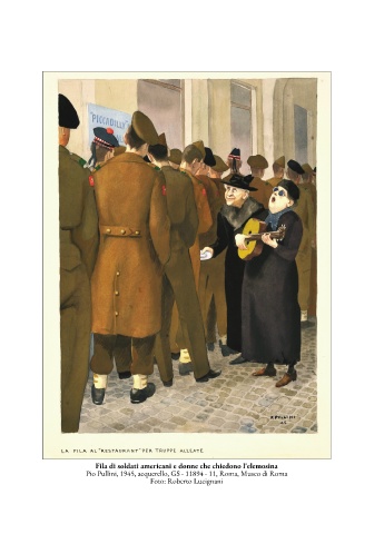 Fila di soldati americani e donne che chiedono l'elemosina Pio Pullini, 1945, acquerello, GS - 11894 - 11, Roma, Museo di Roma Foto: Roberto Lucignani
