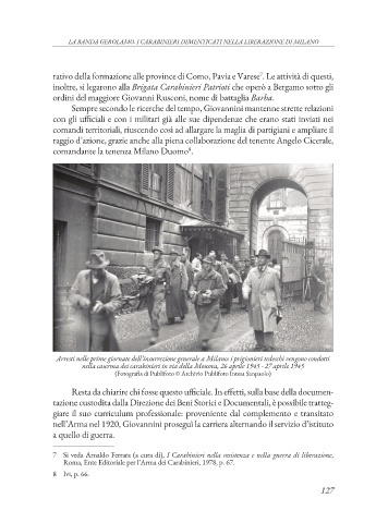 7 Si veda arnaldo Ferrara (a cura di), I Carabinieri nella resistenza e nella guerra di liberazione,