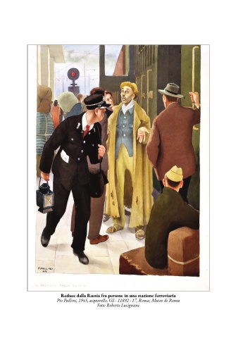 Reduce dalla Russia fra persone in una stazione ferroviaria Pio Pullini, 1945, acquerello, GS - 11892 - 17, Roma, Museo di Roma Foto: Roberto Lucignani
