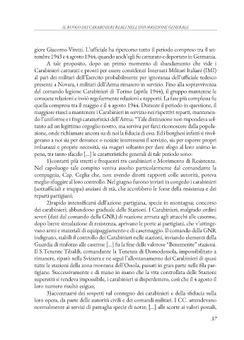 maggiore riuscì a mantenere i Carabinieri in servizio nei rispettivi reparti, mantenen-