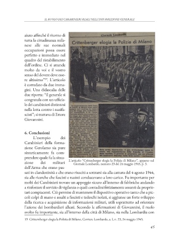zione dei militari l’articolo “Crittenberger elogia la Polizia di Milano”, apparso sul