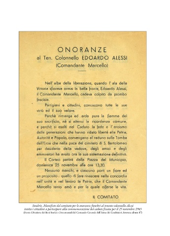 sondrio. manifesto del comitato per le onoranze funebri al tenente colonnello alessi