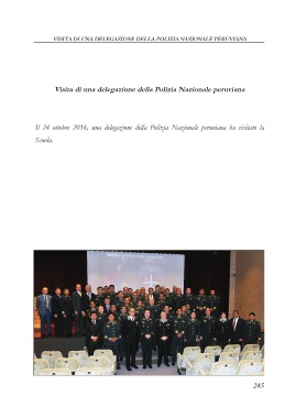 VISITA DI UNA DELEGAZIONE DELLA POLIZIA NAZIONALE PERUVIANA Visita di una delegazione della Polizia Nazionale peruviana Il 24 ottobre 2016, una delegazione della Polizia Nazionale peruviana ha visitato la Scuola. 245