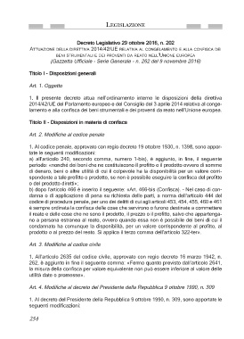 ATTUAZIONE DELLA DIRETTIVA 2014/42/UE RELATIVA AL CONGELAMENTO E ALLA CONFISCA DEI