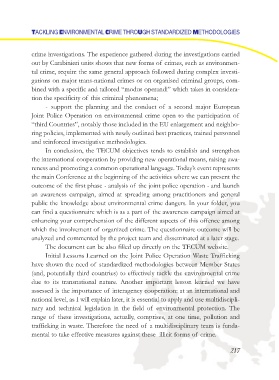 trafficking in waste. Therefore the need of a multidisciplinary team is funda-