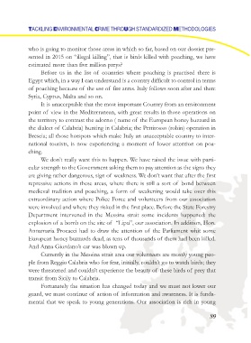 sented in 2015 on “illegal killing”, that is birds killed with poaching, we have