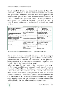 Tab 2 – Confronto fra le esigenze ecologiche del Pino d’Aleppo e dell’Abete rosso.