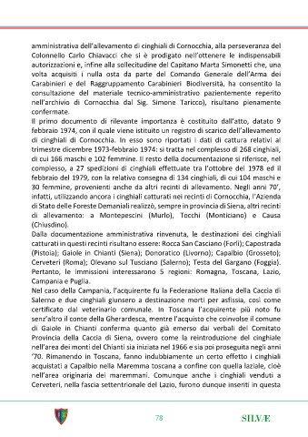febbraio del 1979, con la relativa consegna di 134 cinghiali, di cui 104 maschi e