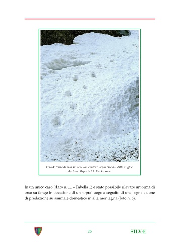 Foto 4: Pista di orso su neve con evidenti segni lasciati dalle unghie.