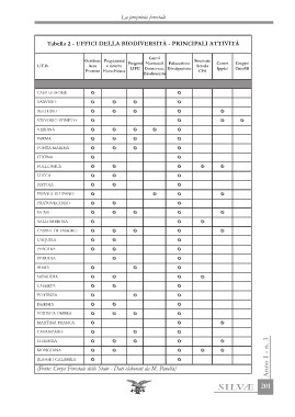 Tabella 2 - UFFICI DELLA BIODIVERSITÀ - PRINCIPALI ATTIVITÀ