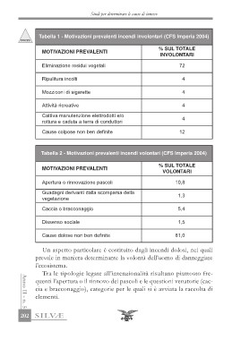 Tabella 1 - Motivazioni prevalenti incendi involontari (CFS Imperia 2004)