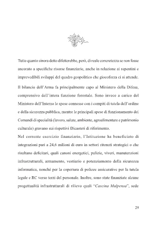Il bilancio dell’Arma fa principalmente capo al Ministero della Difesa,