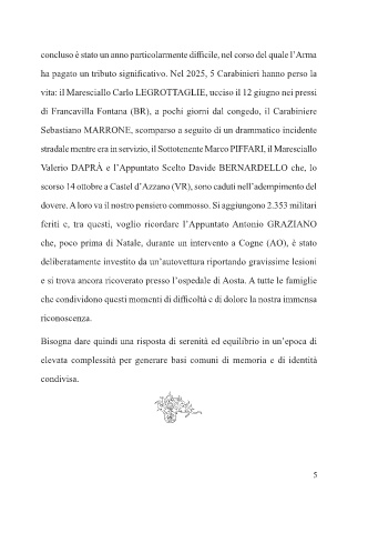 ha pagato un tributo significativo. Nel 2025, 5 Carabinieri hanno perso la