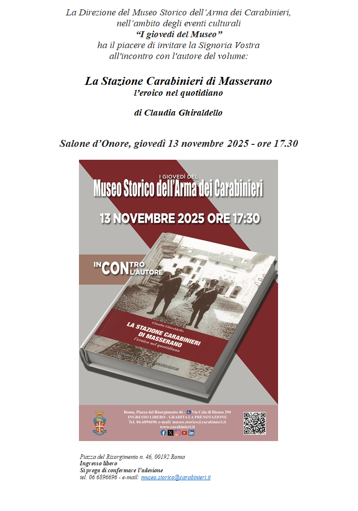 LocandinaIl giorno 13 novembre alle ore 17:30 Incontri al Museo Storico dell'Arma "Incontro con l'Autore"