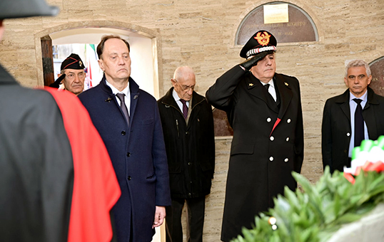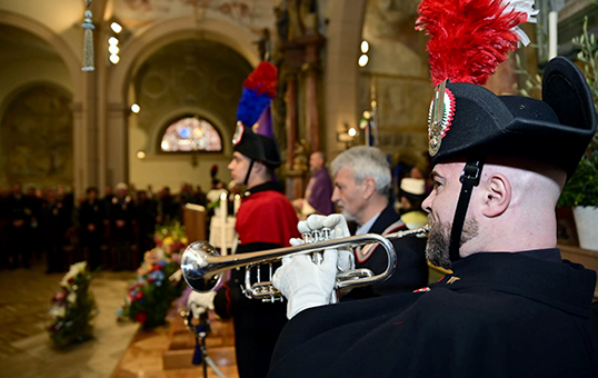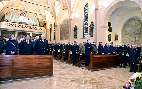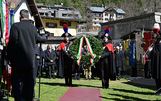 Dopo la funzione religiosa presso la Chiesa “Santi Pietro e Paolo”, officiata dal Parroco di Tarvisio e concelebrata dal Cappellano Militare della Legione Carabinieri “Friuli Venezia Giulia”, sono stati resi gli Onori ai Caduti da un reparto in armi, a cui si sono uniti i gonfaloni dei Comuni di Tarvisio e del Canal del Ferro, i medaglieri e i labari delle Associazioni Combattentistiche e d’Arma. Una corona d’alloro è stata inoltre deposta all’interno del Tempietto Ossario che custodisce le spoglie di 7 dei 12 Carabinieri trucidati.
