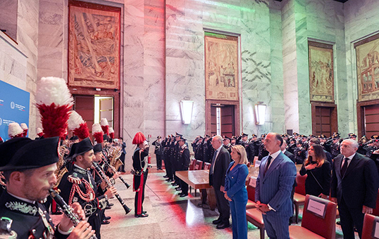 Questa mattina, presso la Sala degli Arazzi di Palazzo Piacentini si è tenuta la cerimonia di intitolazione di un’aula della sede del Ministero delle Imprese e del Made in Italy al Vicebrigadiere Salvo D’Acquisto, Medaglia d’oro al Valor Militare, che in questo storico palazzo prestò servizio e di cui oggi ricorre l’anniversario della nascita. Alla cerimonia sono intervenuti il Ministro Adolfo Urso, il sottosegretario di Stato Fausta Bergamotto e il Generale di Corpo d’Armata Salvatore Luongo, Comandante Generale dell’Arma dei Carabinieri.