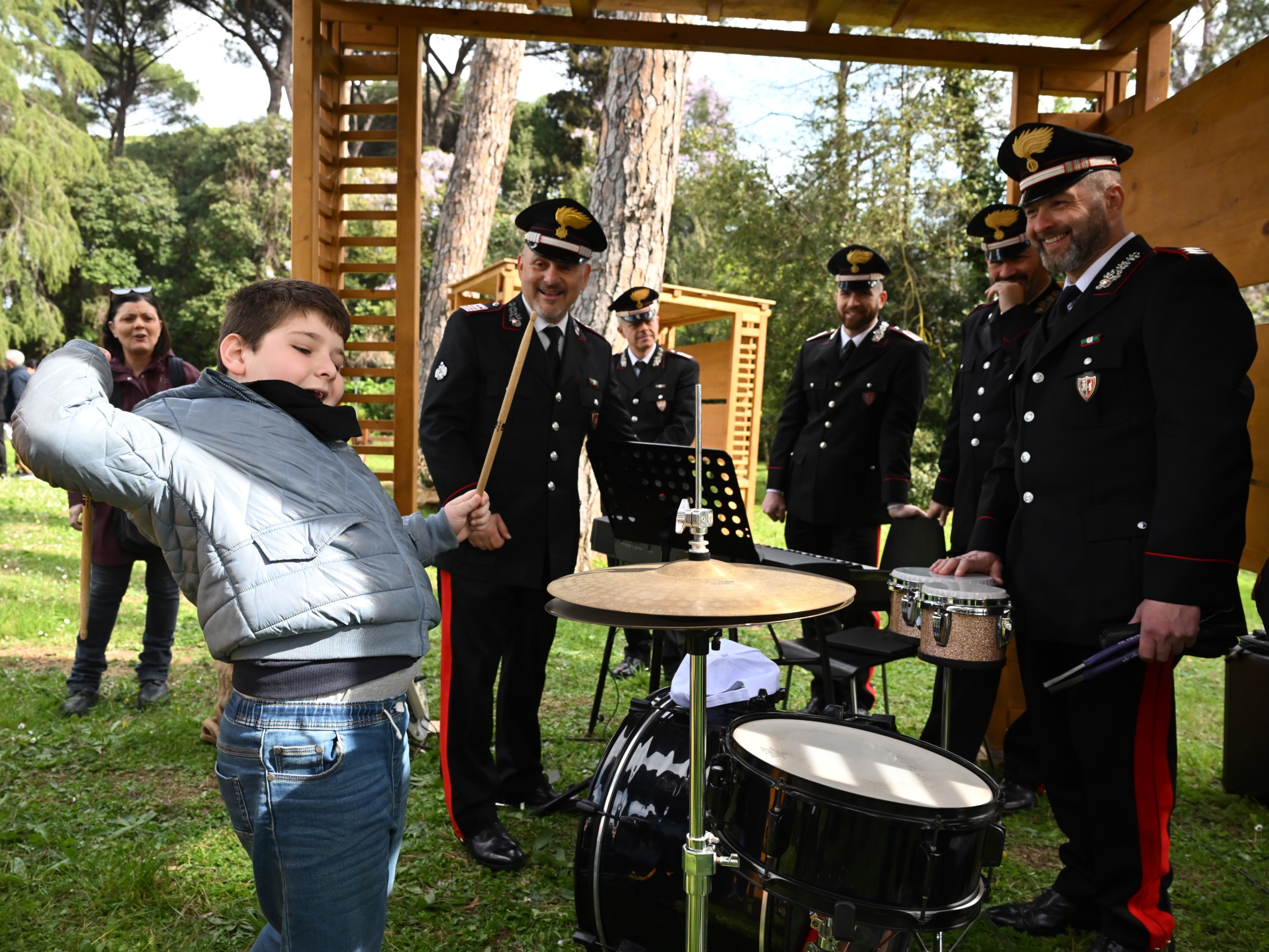 Durante la mattinata, gli ospiti hanno avuto l’opportunità di scoprire le peculiarità della tutela dell’ambiente e la salvaguardia delle specie animali protette attraverso il coinvolgimento diretto in postazioni sensoriali create per l’occasione dai Carabinieri della Biodiversità. Inoltre, supportati dagli istruttori, alcuni ragazzi hanno potuto conseguire il “battesimo della sella” con i cavalli del 4° Reggimento Carabinieri a Cavallo mentre altri si sono improvvisati cantanti e musicisti con i maestri della Banda dell’Arma. Ha riscosso successo anche la possibilità di sentirsi Carabinieri a bordo di mezzi con colori d’istituto.