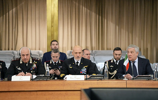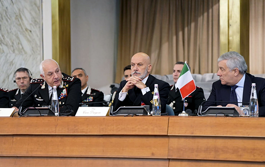 Roma, 23/11/2023Il Vicepresidente del Consiglio e Ministro degli Affari Esteri e Cooperazione Internazionale On. Antonio Tajani, il Capo di Stato Maggiore della Difesa, Amm. Giuseppe Cavo Dragone, e il Comandante Generale dell’Arma dei Carabinieri, Generale di Corpo d’Armata Teo Luzi hanno aperto oggi alla Farnesina la riunione del Comitato Interministeriale di alto livello (CIMIN) che ha funzioni di controllo politico e indirizzo strategico sulla Forza di Gendarmeria Europea (EuroGendFor) e di coordinamento politico-militare tra i Paesi membri.