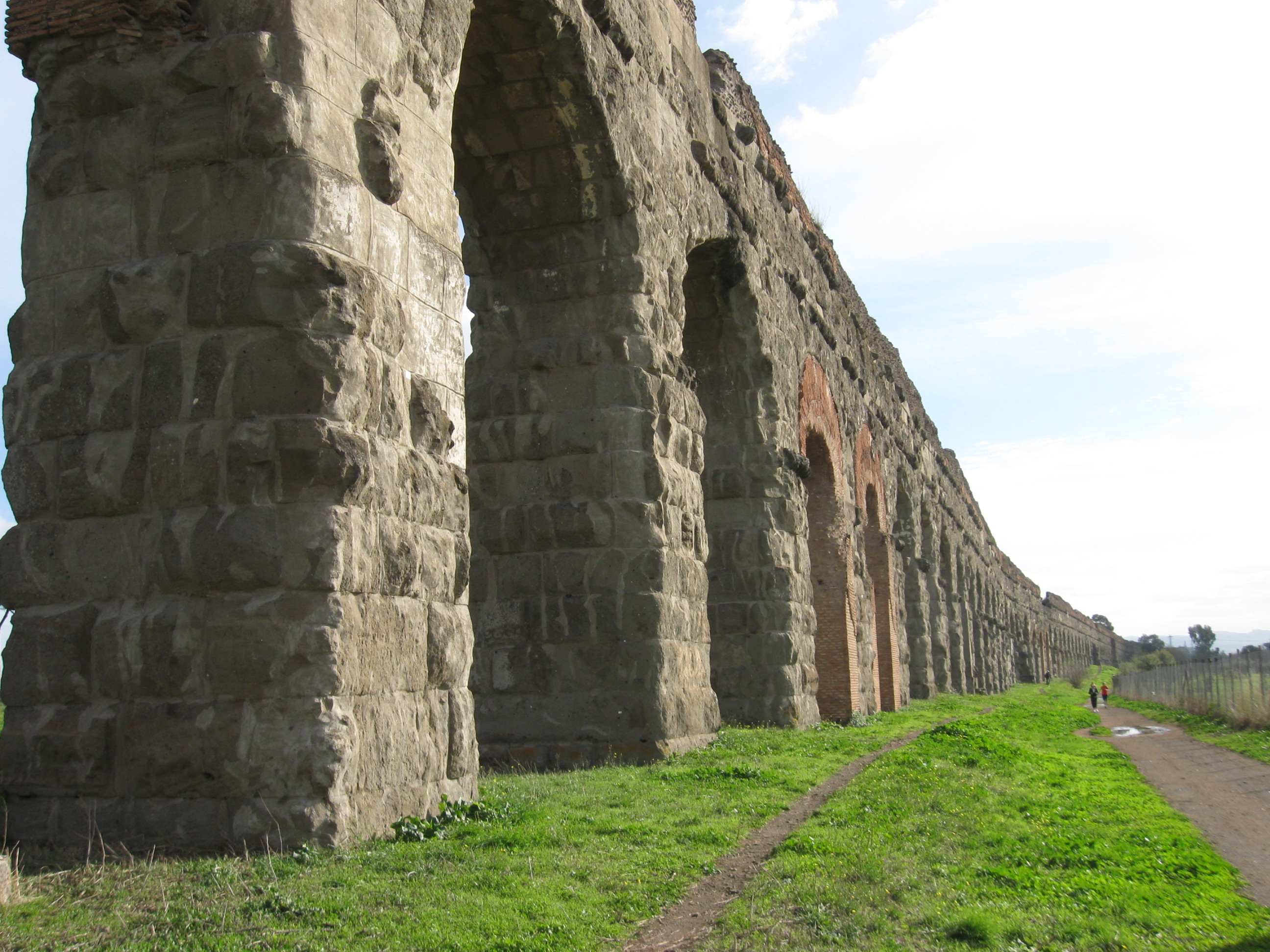 - Le potenti arcate dell’acquedotto Claudio in ingresso a Roma, nel Parco degli Acquedotti (Parco Regionale Appia Antica).