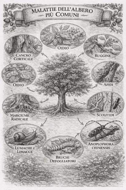 Figura 4: Schema delle principali patologie e alterazioni strutturali degli alberi vetusti.