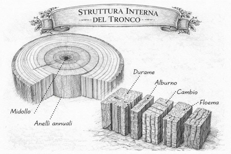 Figura 5: Sezione del tronco per una lettura dei difetti strutturali e distinzione tra degrado e stabilità residua.