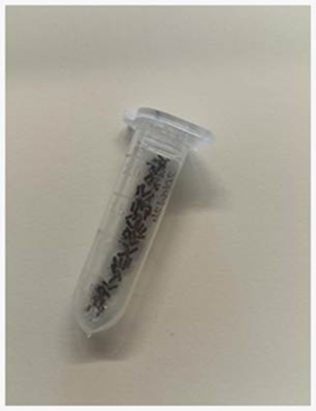Al termine di ciascun periodo di campionamento, i contenitori di raccolta sono stati svuotati all’interno di barattoli a chiusura ermetica (Fig. 4). Il materiale così raccolto è stato quindi portato nel laboratorio di “Strategie Innovative per il Monitoraggio degli insetti” del Dipartimento DAFNE, dell’Università degli Studi della Tuscia (VT), per la fase di svuotamento e pulizia delle catture effettuate.